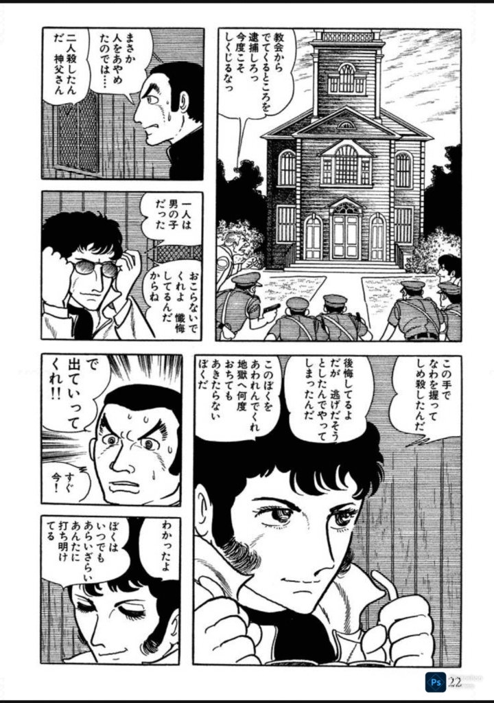 サイコパスという概念が日本でも持ち出されるようになったのは1980年代のことだそうで、手塚さんが美知夫をいわゆるサイコパスにしたかったのか、それとも「悪人」にしたかったのかはわかりません。根っからの悪人なのか、MWの影響をうけて脳に変化が起きてしまったせいなのかも、定かではありません。賀来神父の死を見つめる美知夫の気持ちもくどくどとは表現されていないので、読者はその表情を見てどのように捉えることもできます。こんなあたりも、魅力的です。