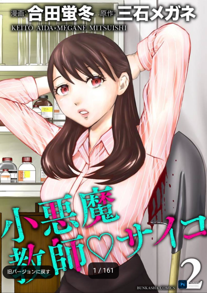 私が読んだ『小悪魔教師♡サイコ』は、漫画 合田蛍冬さん、原作 三石メガネさんの作品です。「私が読んだ」と、含みがあるのは、この作品が刊行されたあとに、別の漫画家さんでまったく同じストーリーが、タテコミ、フルカラーで発行され始めたからです。