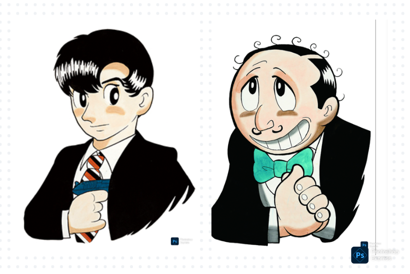 ロックを思わせるのは多分髪型と悪人、ハム・エッグは、、、なんだろう?歯をガッツリ見せてるとこと眉が下がってるところかなあ。(イラストは、手塚治虫さんオフィシャルサイトに掲載されているものです)